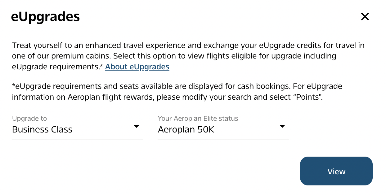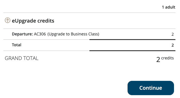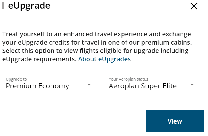 If you don’t see any eUpgrade credits here, it means that you don’t have Aeroplan Elite Status.