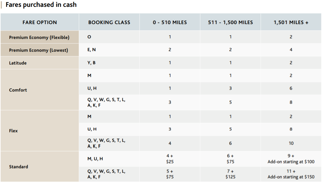 An important consideration with Flight Passes is that eUpgrades can be used with all Flight Pass bookings. As a reminder, the amount of eUpgrades required to upgrade to a higher class of service depends on the booking class of the Flight Pass you purchase.