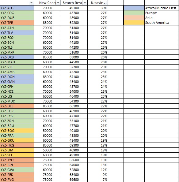 It certainly feels like a lot more than 10% of the flights are falling outside the published range, thus resulting in less predictability to the prices of Air Canada flights, which is a net negative in my books.
