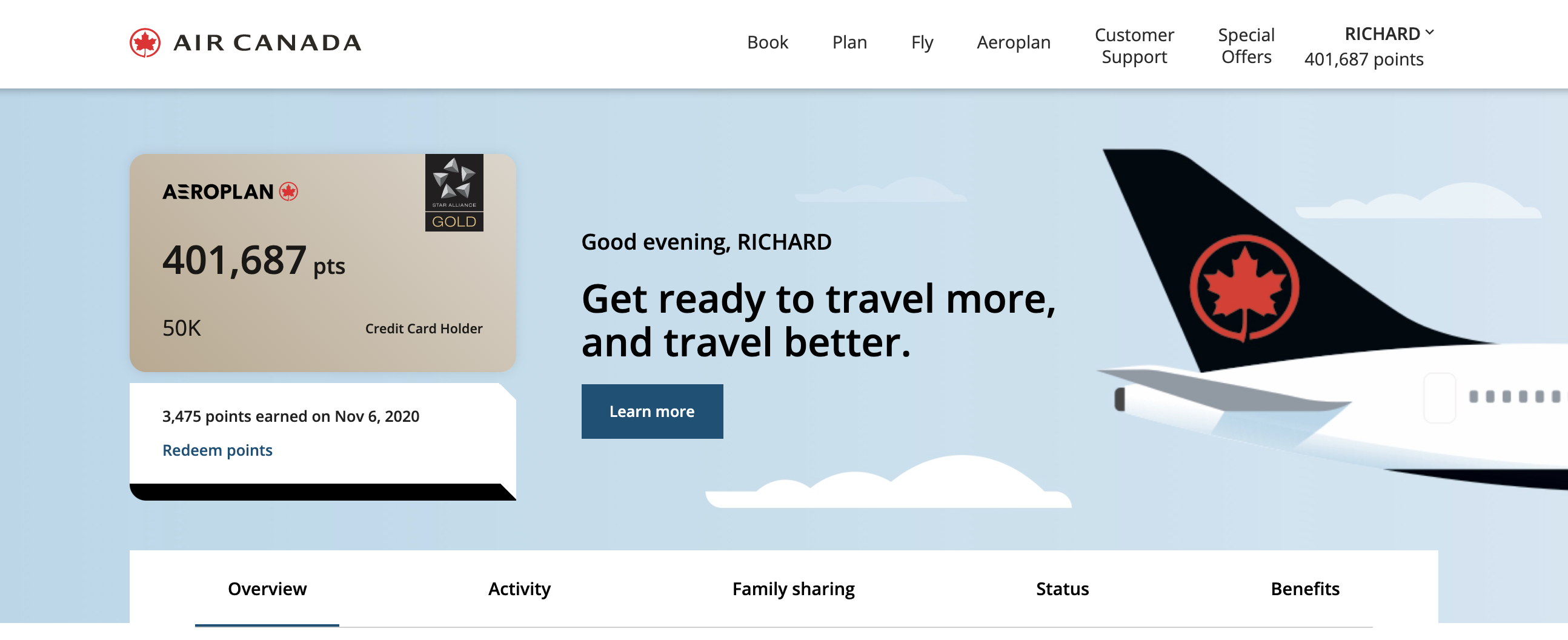 Aeroplan is now an integrated part of the Air Canada website. You’ll log in with the same credentials as you did before, which will bring you to the Aeroplan member dashboard.