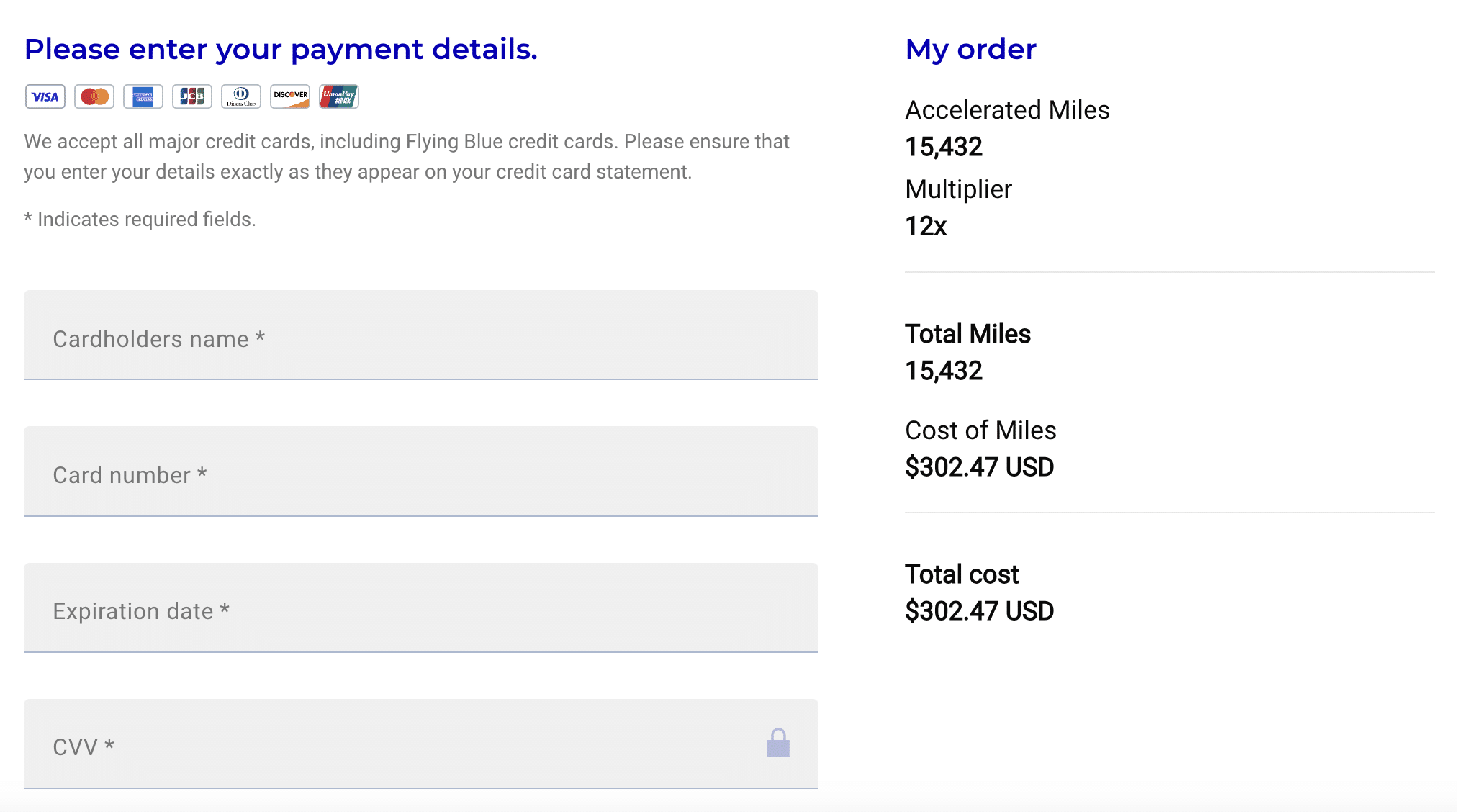 If you wish to proceed to top up your miles, simply enter your payment information, and you should be all set.