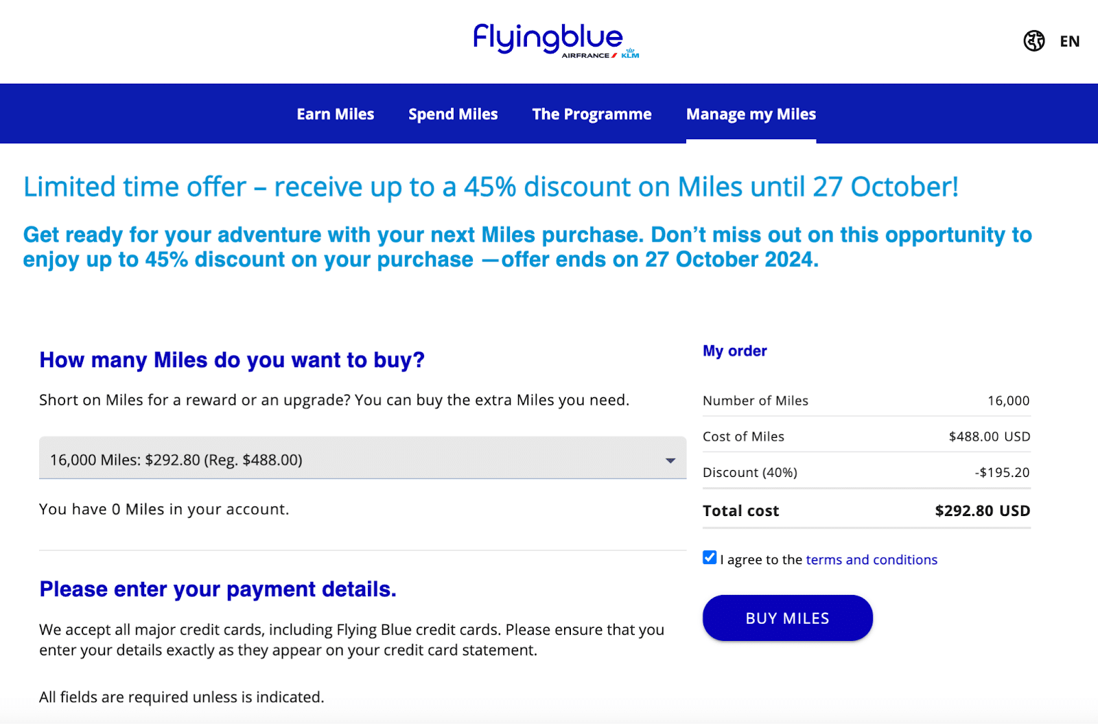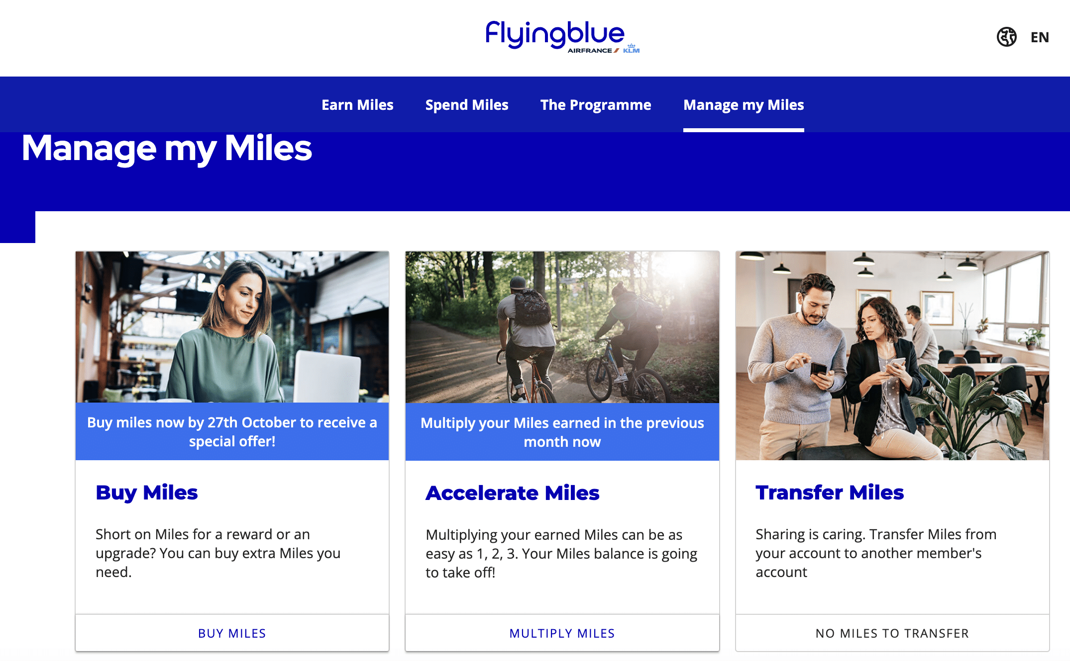 Even if you wanted to top up some miles for a specific redemption, Flying Blue periodically runs discount promotions on Flying Blue miles purchases.