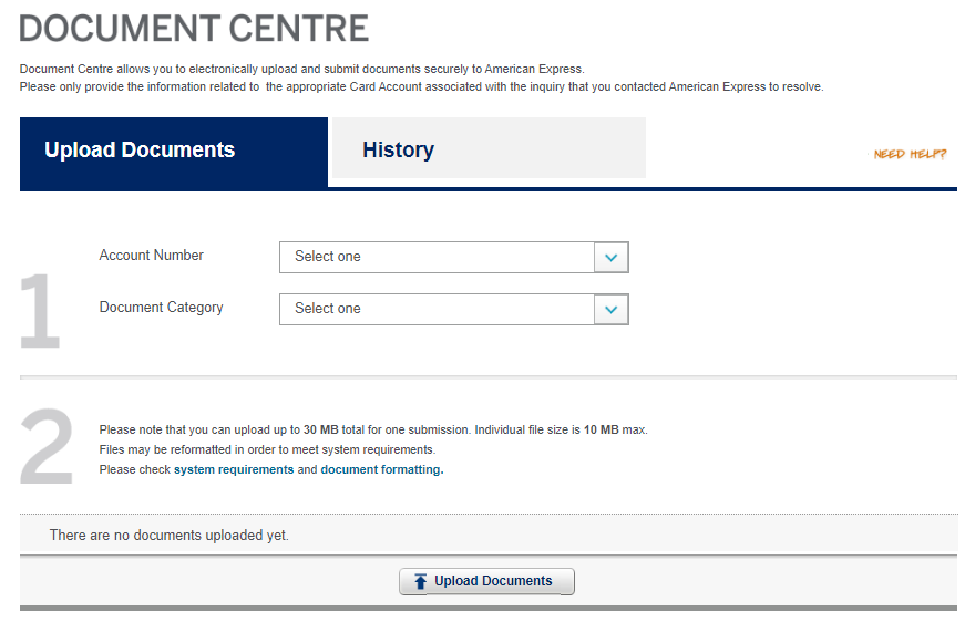Documentation may be sent in via the Form and Document Centre on the American Express website or by fax. If you submit the documents via the Form and Document Centre, it is a good idea to call the financial review team to verify that they have received everything.