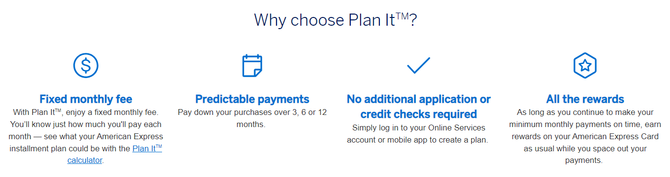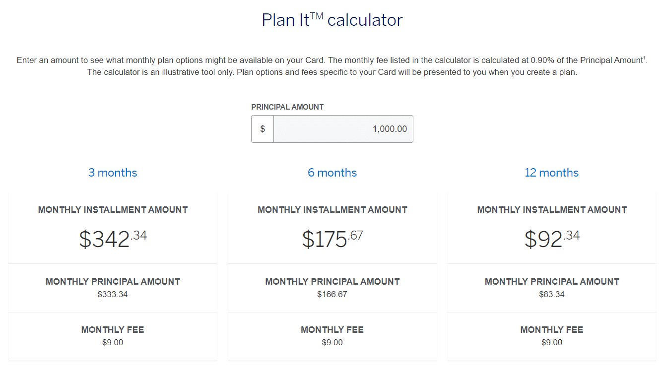 Amex Plan It stands out for its simplicity – it uses fixed monthly installment fees instead of more complicated APR calculations.