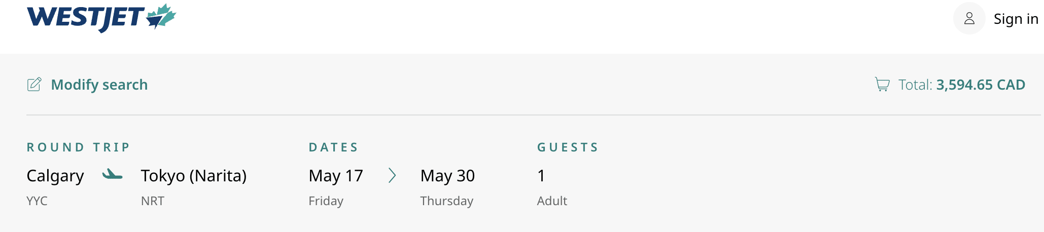 Lastly, let’s look at a premium economy ticket on WestJet’s longest route from Calgary to Tokyo.