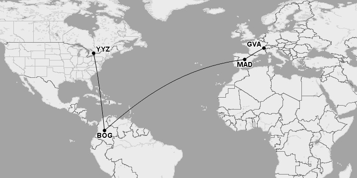 Flying Avianca business class from Europe down to Bogotá and then returning to North America