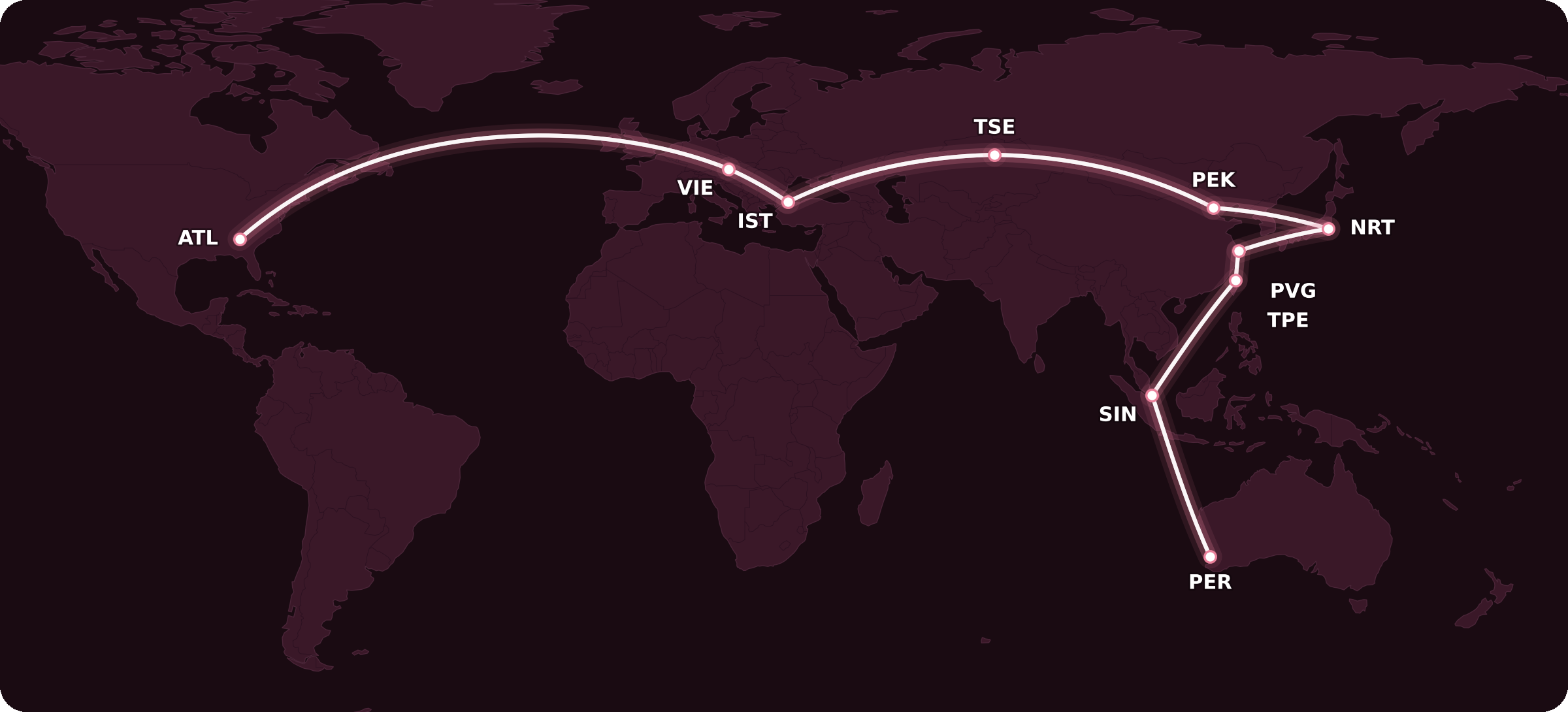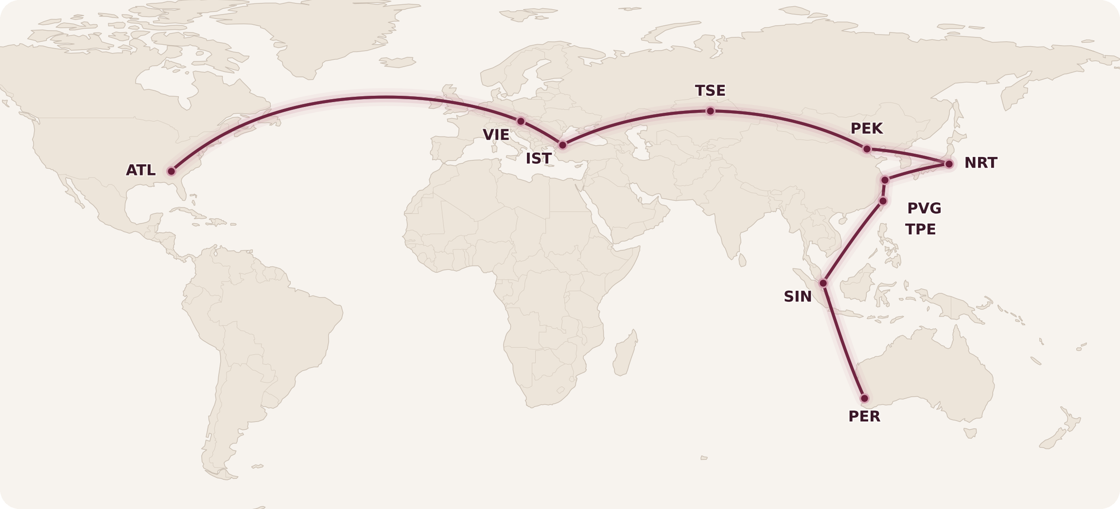 As of November, EVA Air will be flying their Boeing 787 on their Vienna–Taipei route, so that was the first to go on the map: