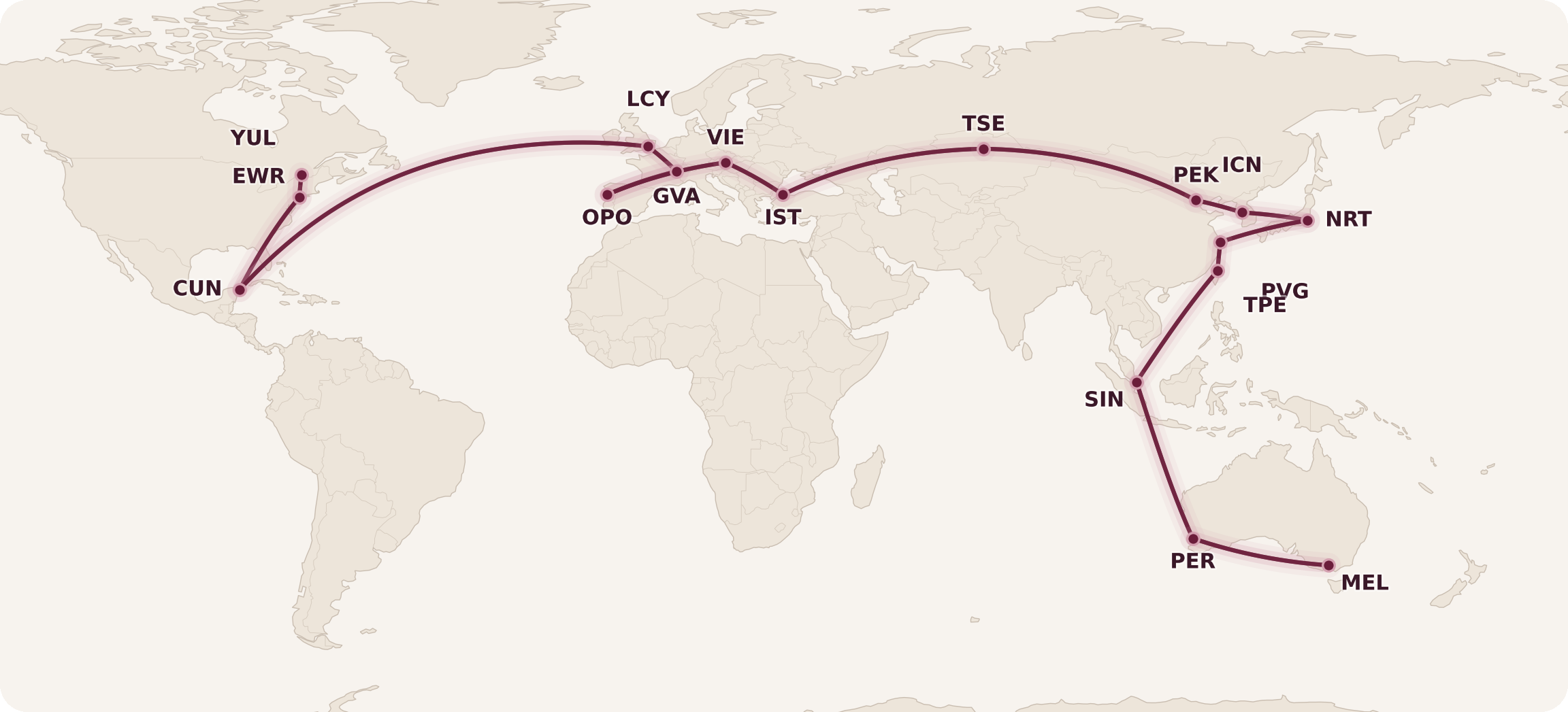 The Turkish Airlines 787. The EVA Air 787. The ANA 787. The TAP Air Portugal A321-LR. Cancún, Kazakhstan (with potentially a side-trip to Uzbekistan), Shanghai, Melbourne, Geneva, London, Porto. I’m beyond pleased to have booked another globetrotting adventure, and am once again blown away by the fact that I was able to accomplish this with 160,000 Aeroplan miles – I don’t think that feeling will ever get old.