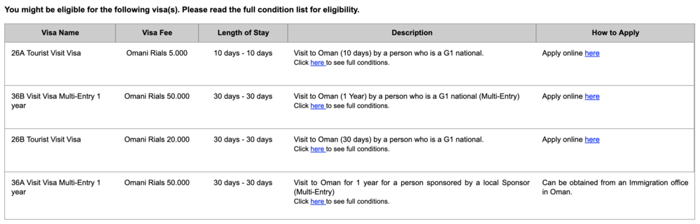 Following that, you’ll be asked to choose the exact visa type you’re applying for. This will depend on how long you intend to visit Oman. Since my trip was only for a few days, I chose the 26A Tourist Visit Visa, which allows nationals of “Group 1 countries” to visit Oman for up to 10 days.