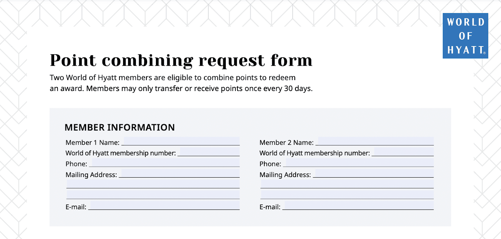 For example, Marriott Bonvoy allows you to transfer up to 100,000 points to another member each calendar year, and you can only receive up to 500,000 points total each year.