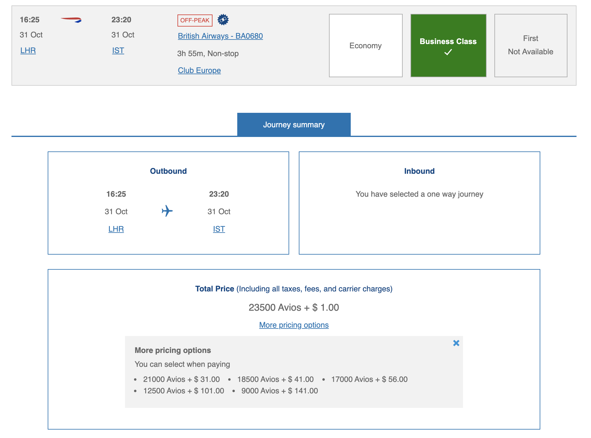 However, just like above, these valuations are not fixed either, and vary from market to market. Take the example of the pricing options on London–Istanbul in British Airways business class: