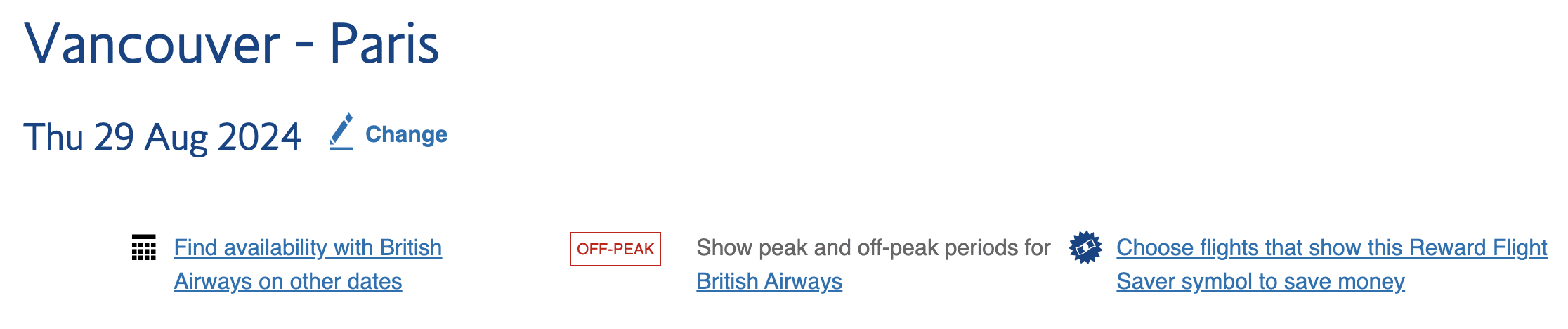 The British Airways Club uses peak and off-peak pricing on British Airways award flights. Flights on peak dates cost more in Avios than flights on off-peak dates.