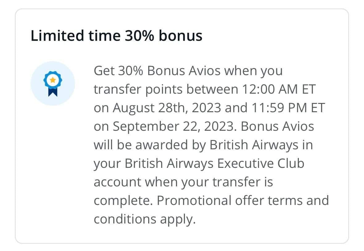 By transferring points during a 30% bonus event, the effective cost for that flight is around 62,000 points, since most points convert to British Airways Avios at a 1:1 ratio.