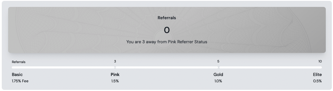Three successful referrals will get you Pink Referrer Status, which lowers your processing fee to 1.5%. Five successful referrals will grant you Gold Referrer Status and a 1% processing fee, and 10 successful referrals comes with Elite Referrer Status and the lowest 0.5% processing fee.