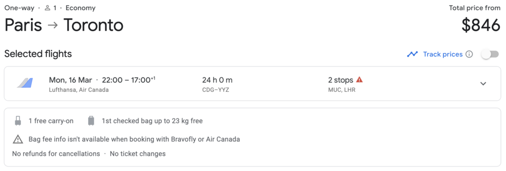 Right now, though, I’m seeing one-way flights still available from most corners of the world to Canada at no more than the $1,000–$1,200 range, which, if it’s within your means, can easily be worthwhile compared to the alternative of being stuck abroad for the foreseeable future.