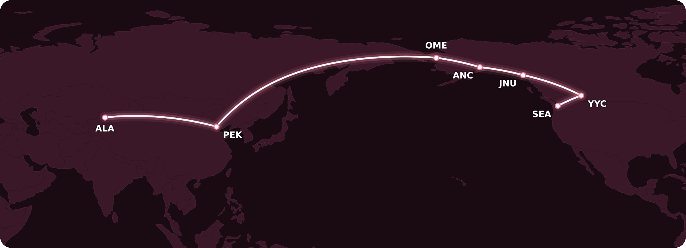 So if you wanted, you could travel from Calgary to Nome, Alaska, stop there for a little while, then fly all the way to Almaty, Kazakhstan, for just 30,000 miles in economy class. If you wanted business class for the transpacific segment, that’d be 50,000 miles in total.