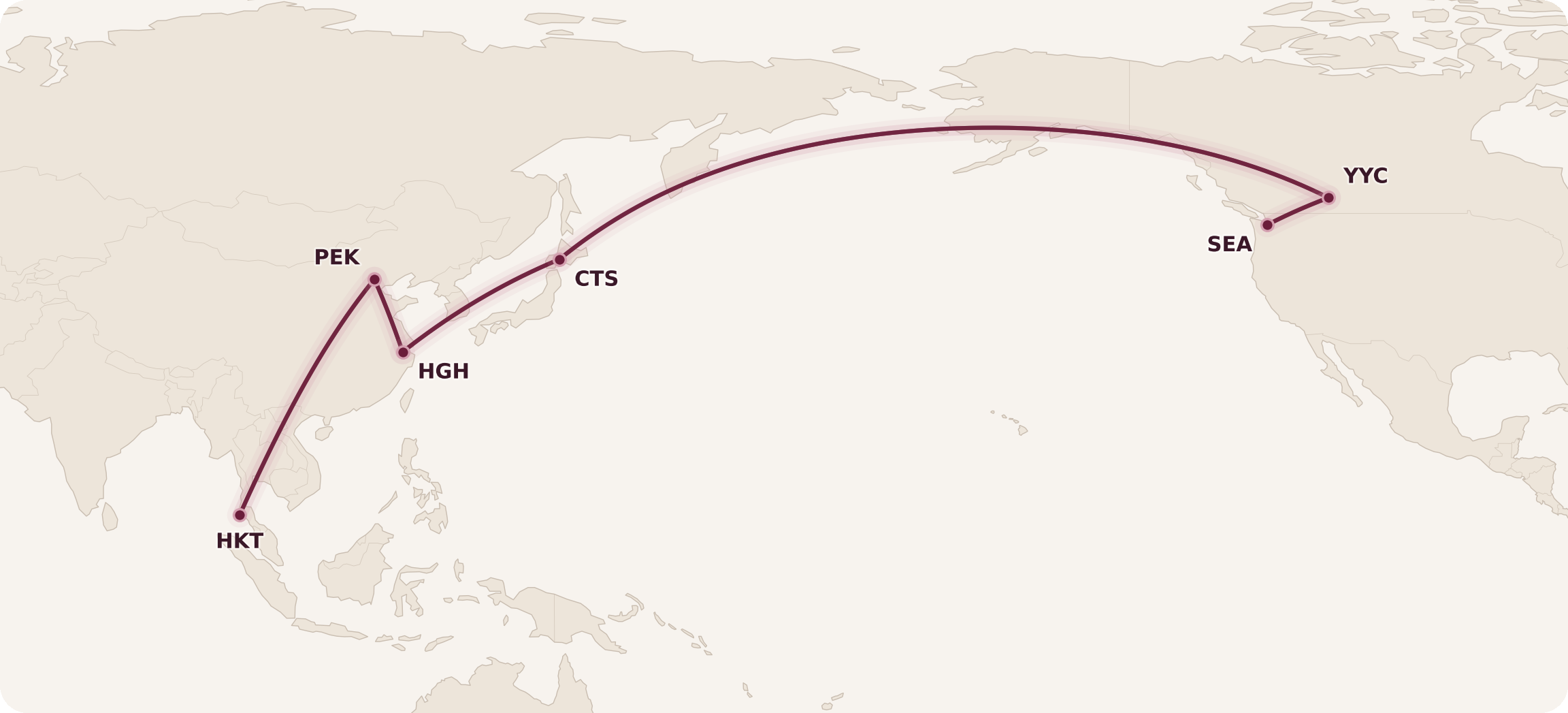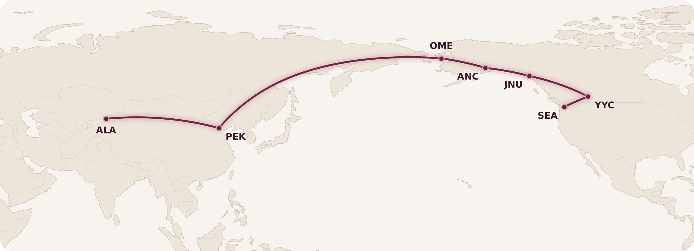 (Anchorage isn’t shown on this map, but you can do stopovers there as well.)