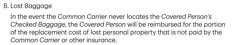 Credit card insurance policies are usually more detailed regarding language surrounding delayed baggage.