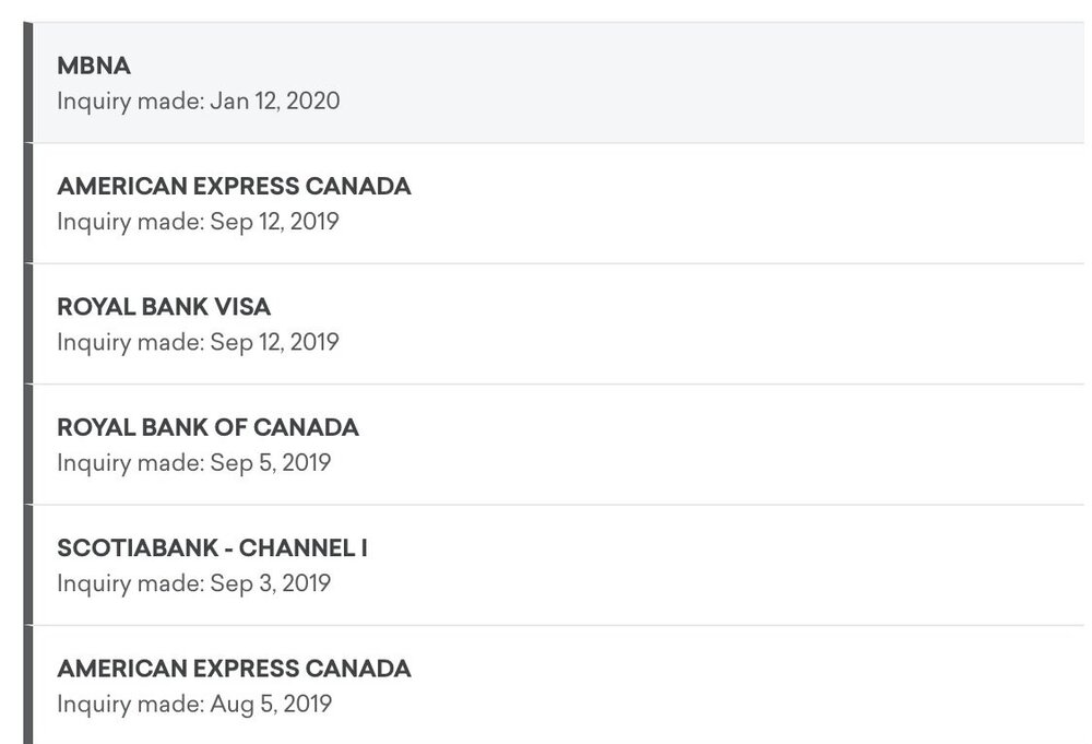 Note that MBNA usually pulls data from your TransUnion credit report, not your Equifax one, and so it’s the number of recent inquiries on TransUnion that matters. As a reminder, the major Canadian credit issuers generally pull from the two major credit bureaus as follows: