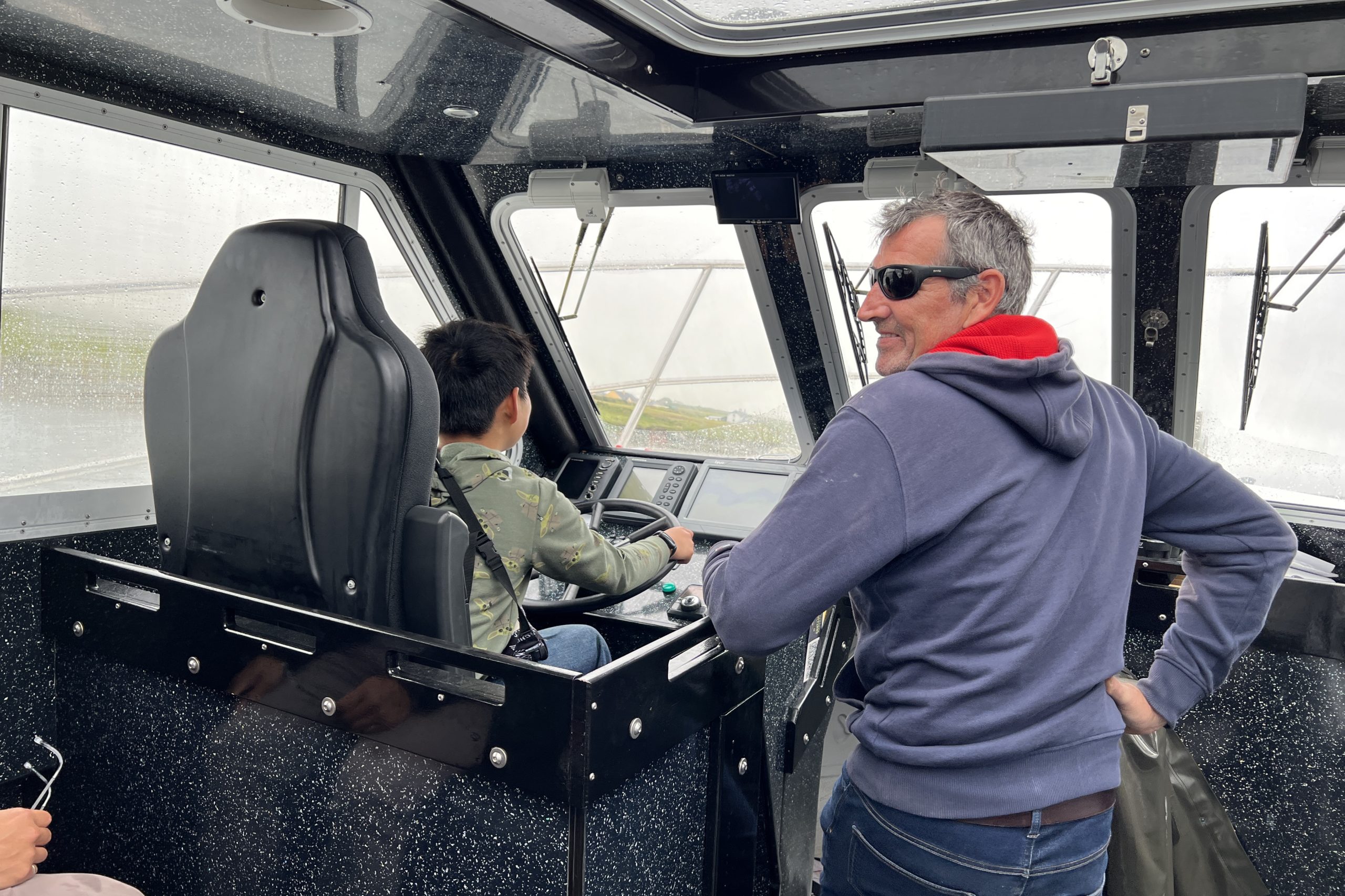 We went with Skellig Coast Adventures, as they have one of the newest boats, called the Skellig Walker, which has a large indoor and outdoor seating area and a clean toilet onboard. The staff were also great with my son, and even allowed him to drive the boat for a bit!