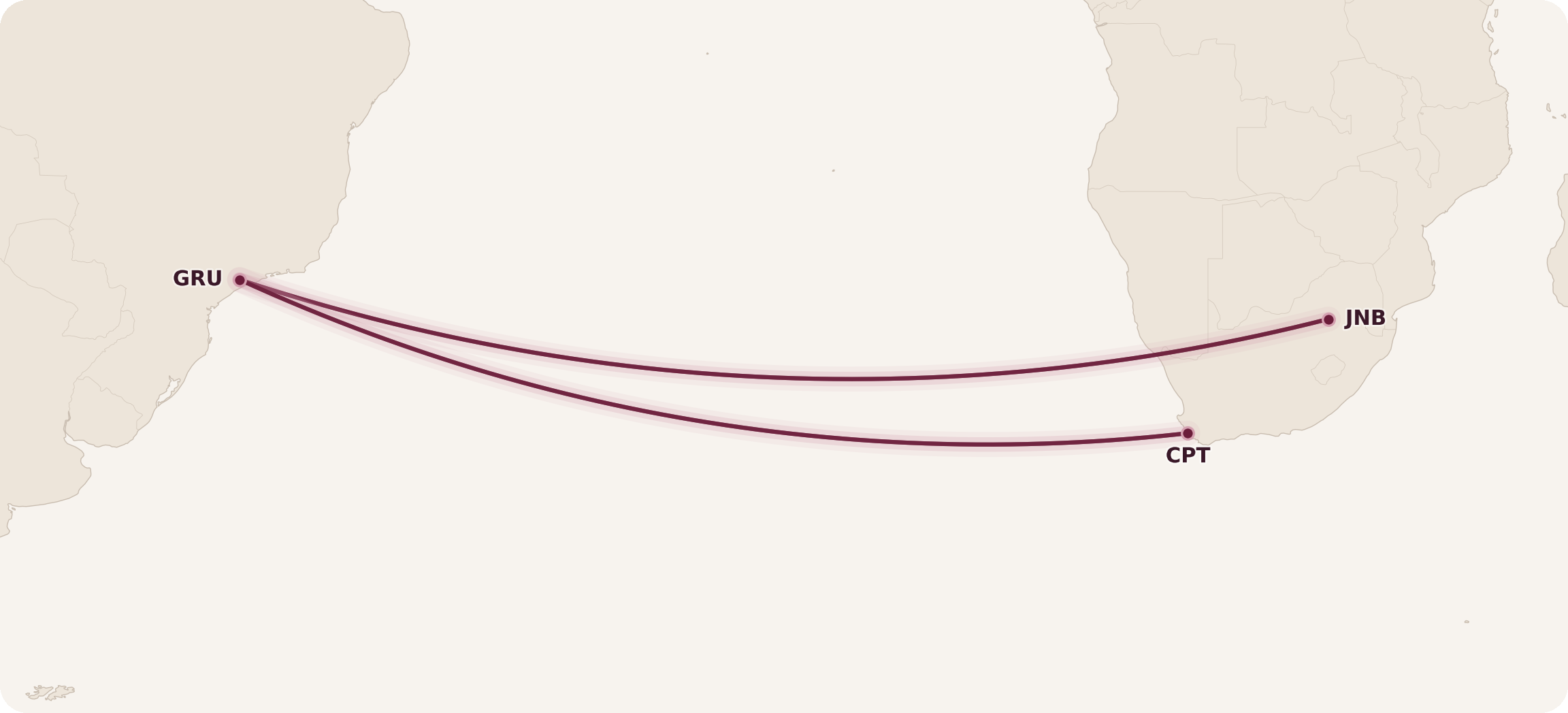 - Cape Town (CPT)–São Paulo (GRU)