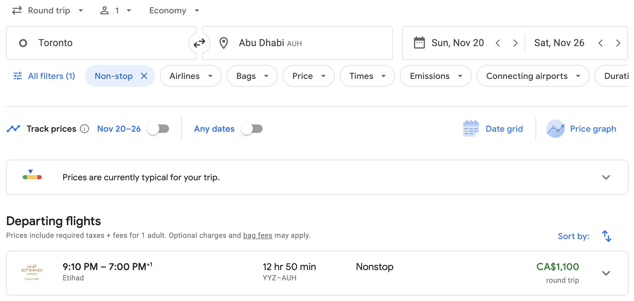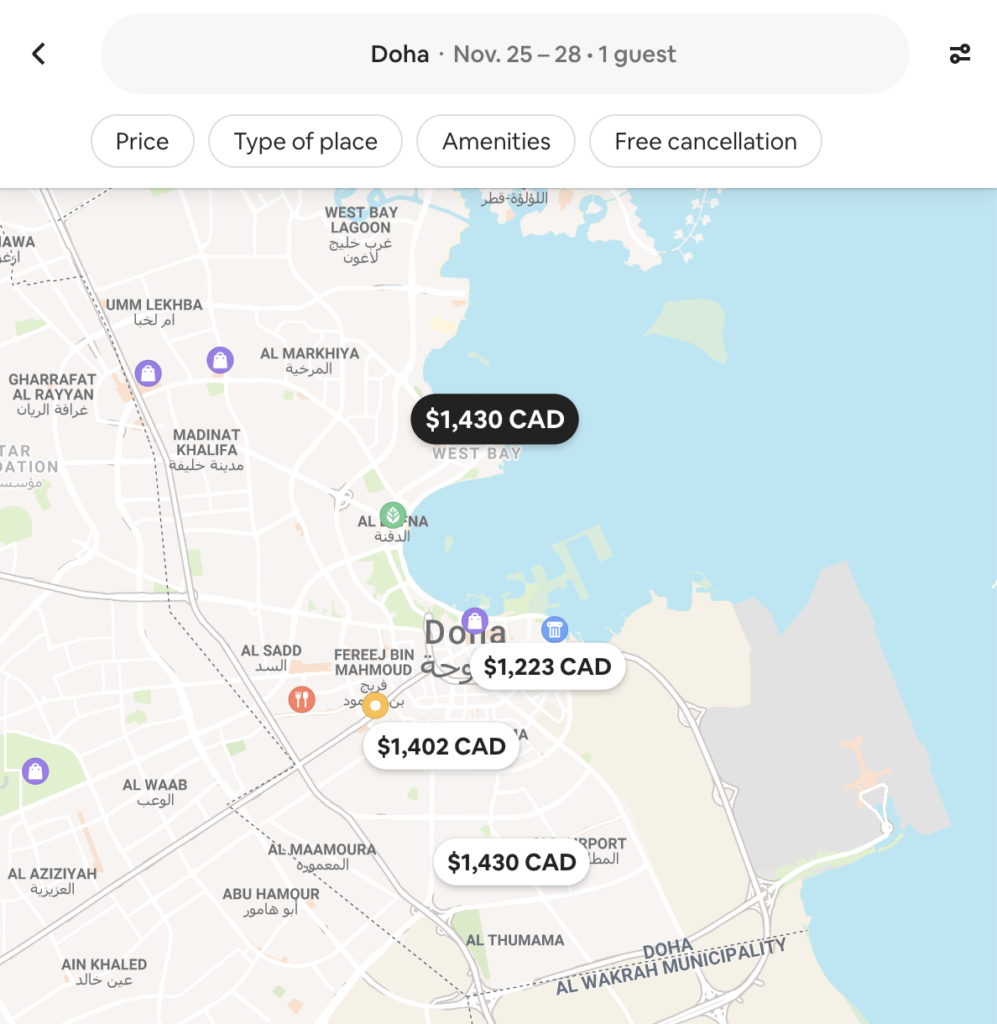As you can imagine, round-trip airfare from North America to Doha during World Cup dates is currently fairly high. Multi-stop itineraries can be booked in the range of $1,500 (CAD), while more direct routings verge closer to $2,000+ (CAD).