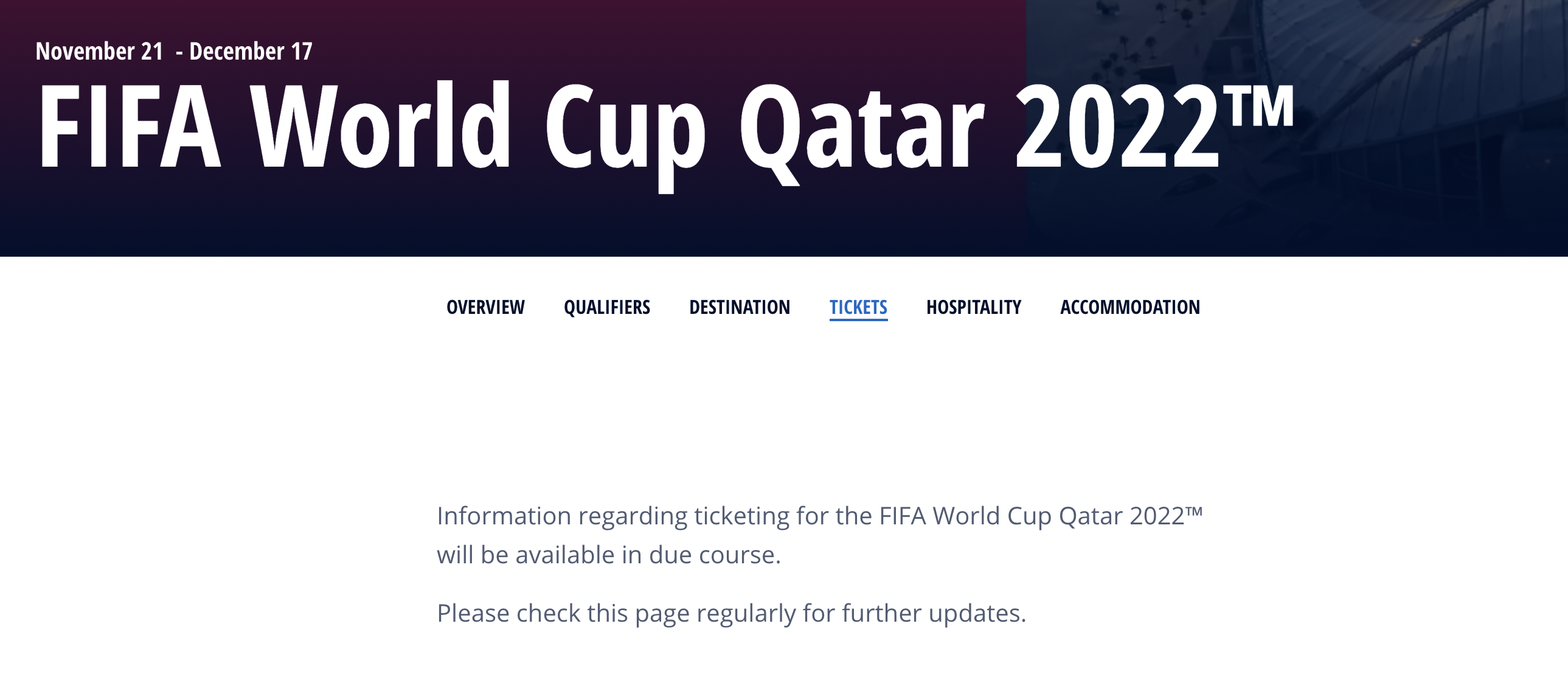 Match tickets for the FIFA World Cup Qatar 2022 have not yet gone on sale.