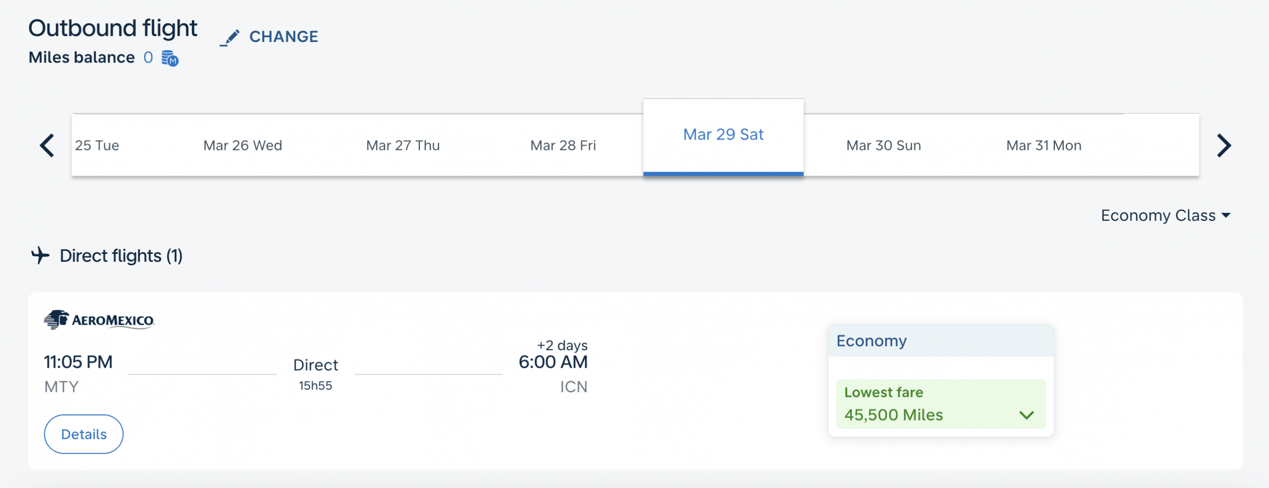 As an example of the available Flying Blue redemptions, you could fly from Monterrey (MTY) to Seoul (ICN) for 45,500 miles in economy.