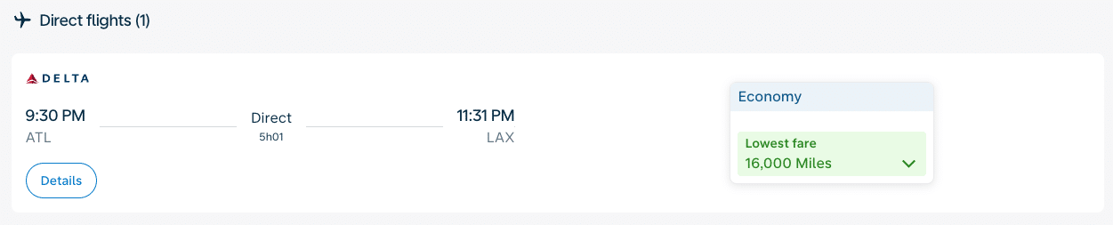Through the Flying Blue program, you can fly from Atlanta (ATL) to Los Angeles (LAX) for just 16,000 miles in economy. This offers a cost-effective way to travel across the country, especially during peak season.