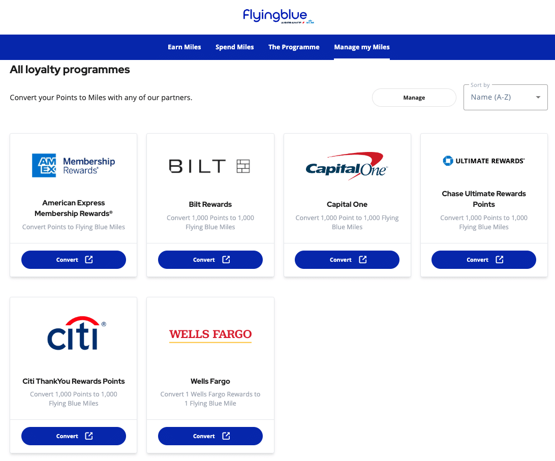 Fortunately, Air France–KLM partners with all of the major transferrable point programs in North America, which means you can transfer the following points to Flying Blue: