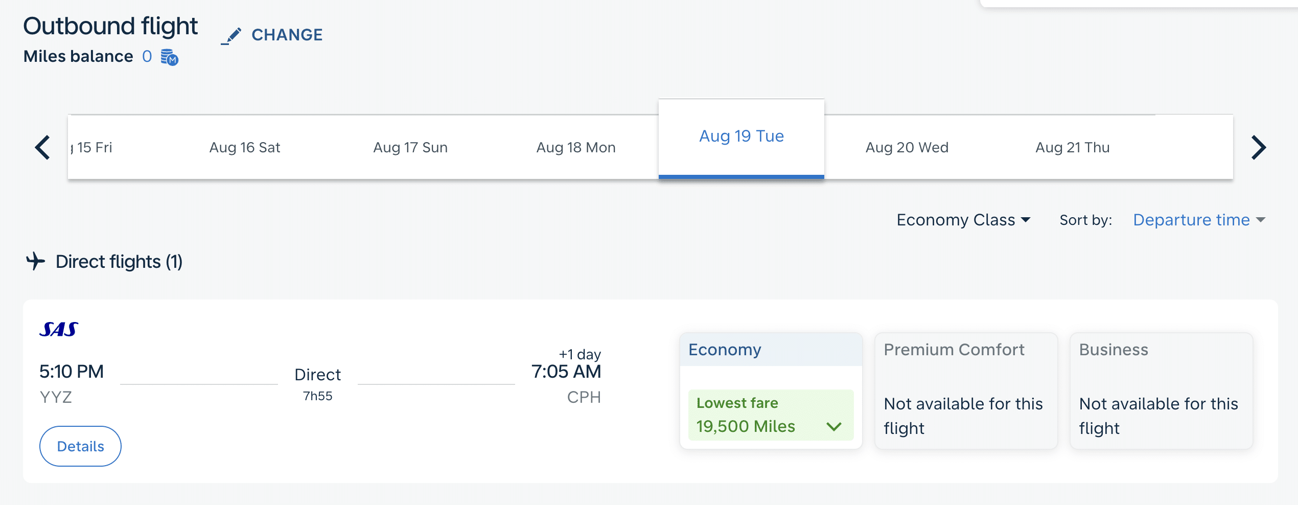 By redeeming Flying Blue miles with SAS, you can fly non-stop from Toronto (YYZ) to Copenhagen (CPH) for only 19,500 miles in economy, which is a fantastic deal for a transatlantic flight. This route offers great value and serves as a gateway to Denmark and nearby Scandinavian countries.