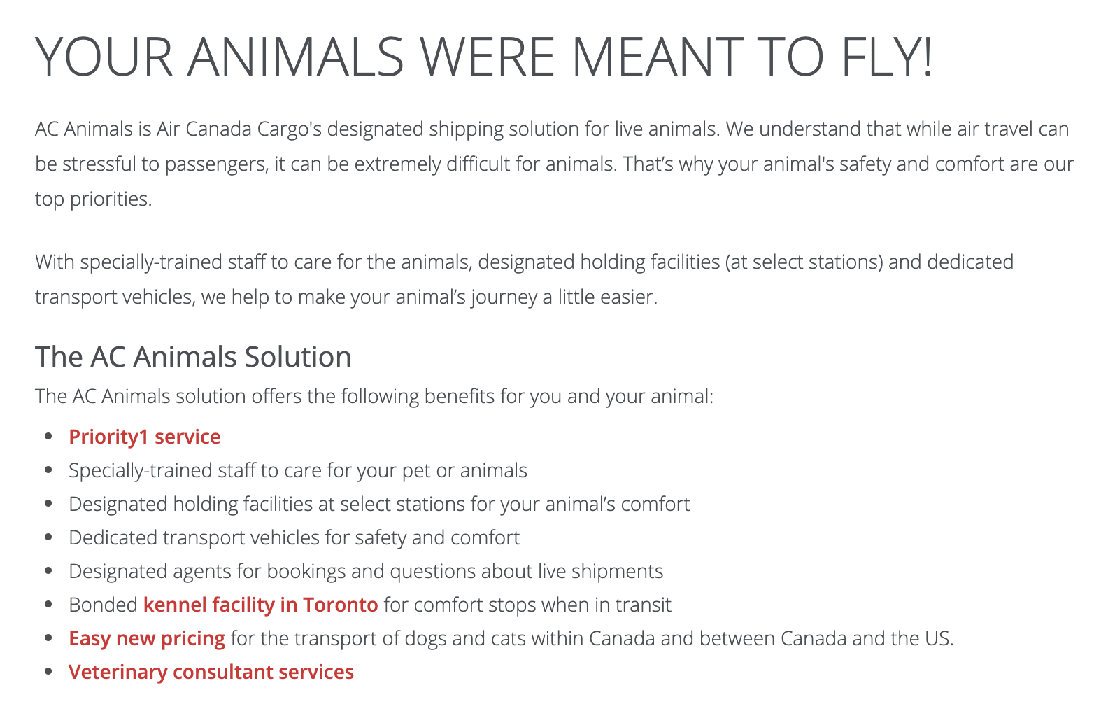 (At the time of writing, Air Canada is not accepting cats or dogs as cargo due to the COVID-19 pandemic, and WestJet is only accepting kennels within 48 hours of departure.)