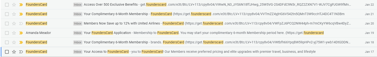 Some years back, I was told about the FoundersCard by a friend. I was encouraged over and over again to sign up for the card, but since the person pushing it wasn’t someone who had a firm grasp on value, I just simply ignored it at the time.
