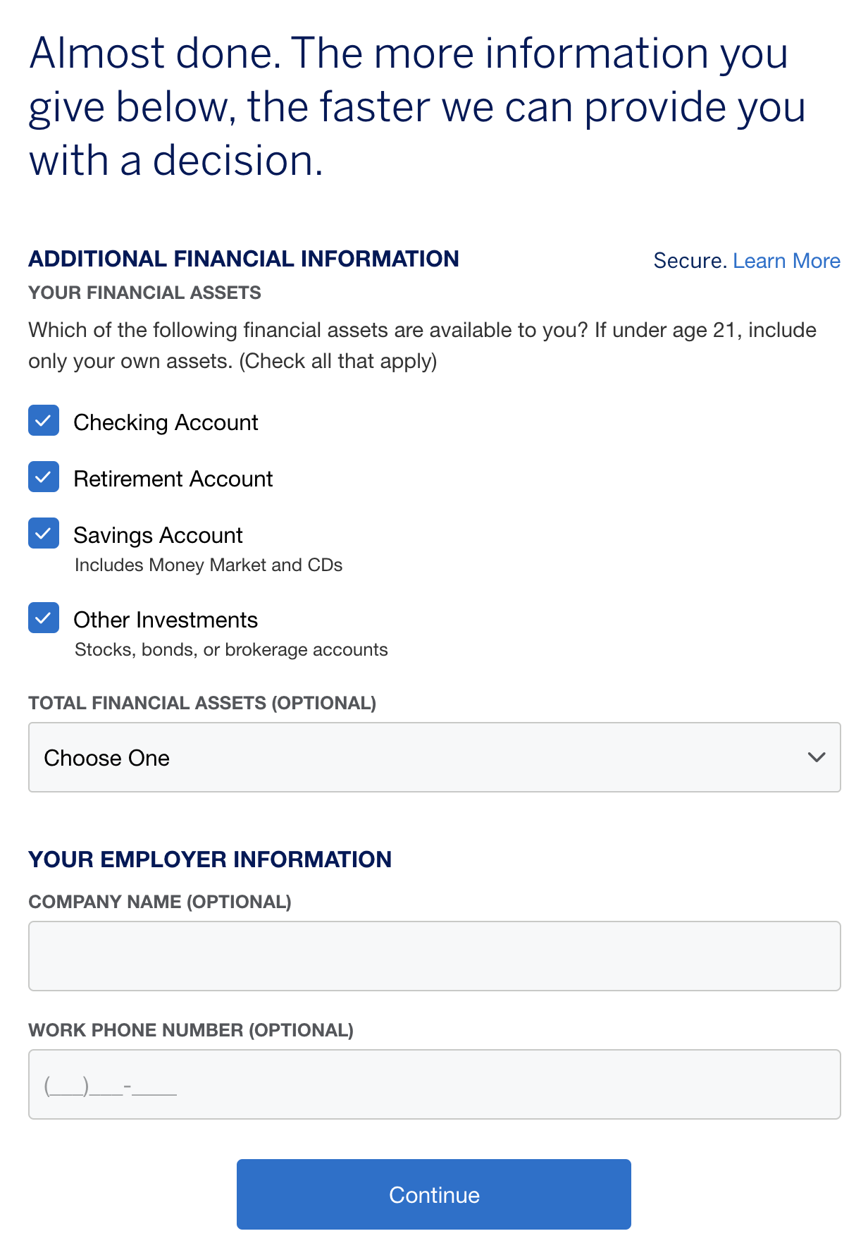 You’ll then be prompted to login to your Amex account, and some of your information will auto-fill on the application page.