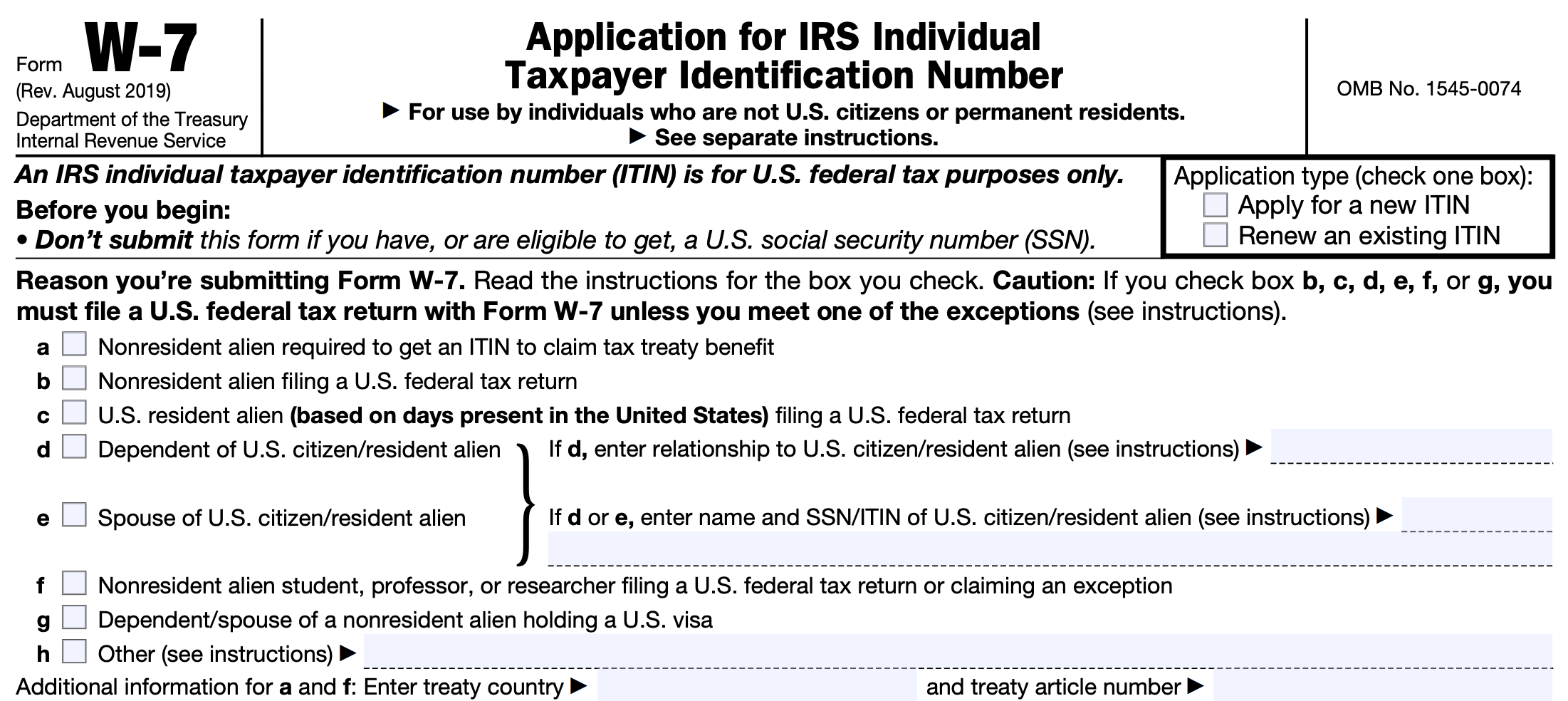 These services will generally provide you with a completed W-7 form, which is the ITIN application form.