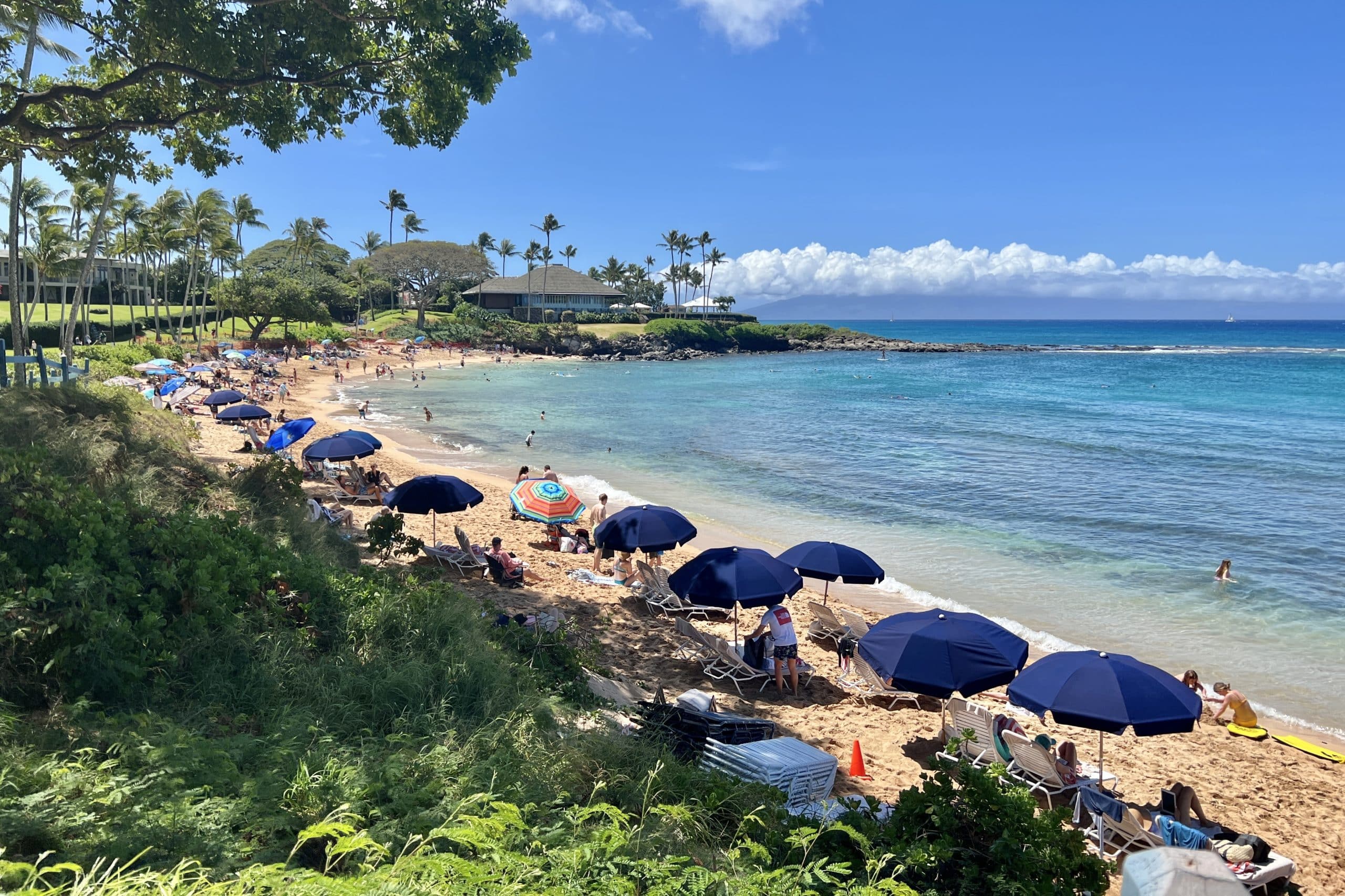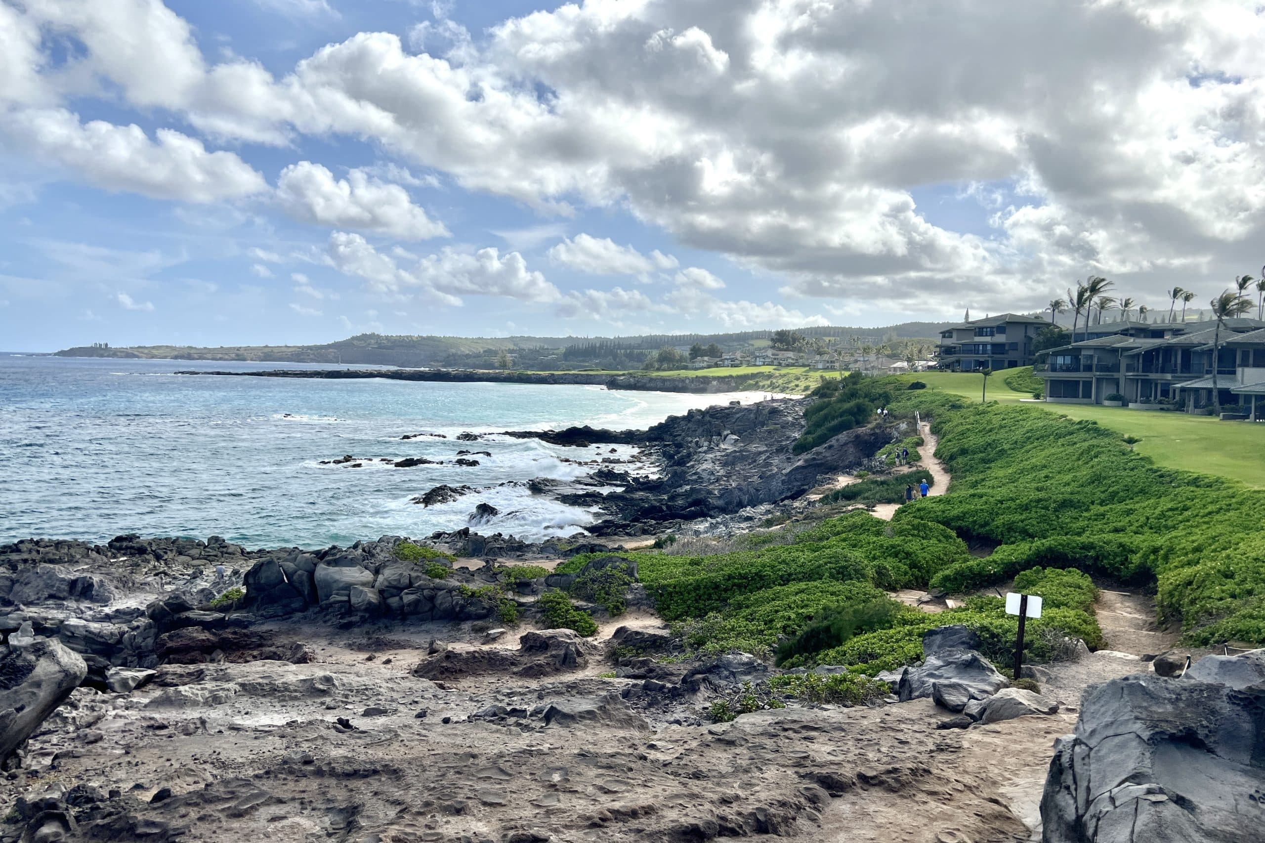 Sandy beaches are interspersed with rocky formations along its scenic coastline. Like Kā‘anapali, there is a nice coastal boardwalk that connects the various resorts.