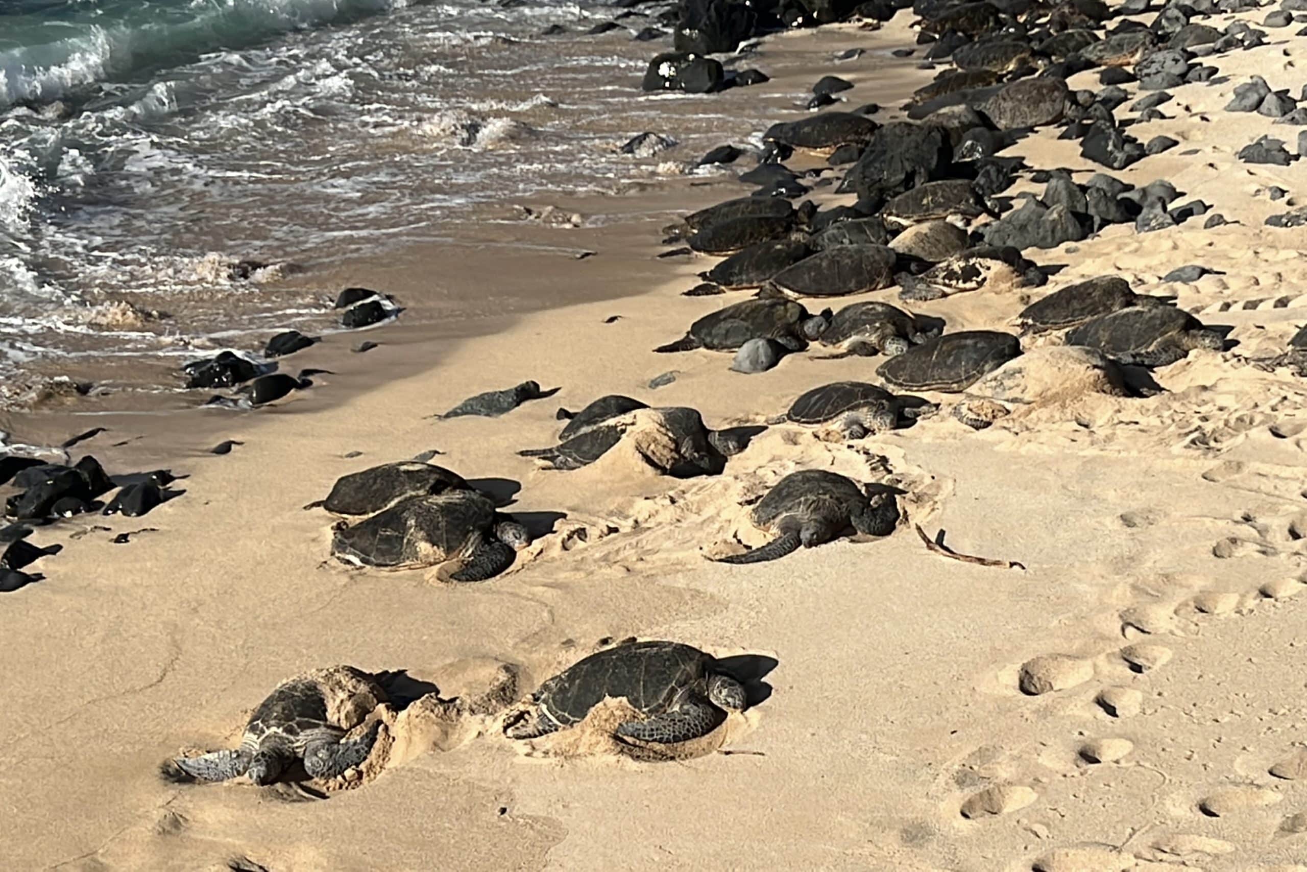 Just a few minutes down the road from here is Ho’okipa Beach Park, where you can find plentiful sea turtles coming out of the ocean and lounging on the beach – between 4–6pm is the best time to see them.