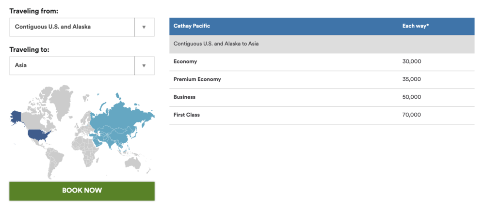 You can fly from North America to Asia on either Cathay Pacific or Japan Airlines, as well as North America to Australia on Qantas, for 55,000 miles in business class or 70,000 miles in First Class; furthermore, the Cathay Pacific redemption can be extended as far as South Africa, the Middle East, or Australia for a token premium.