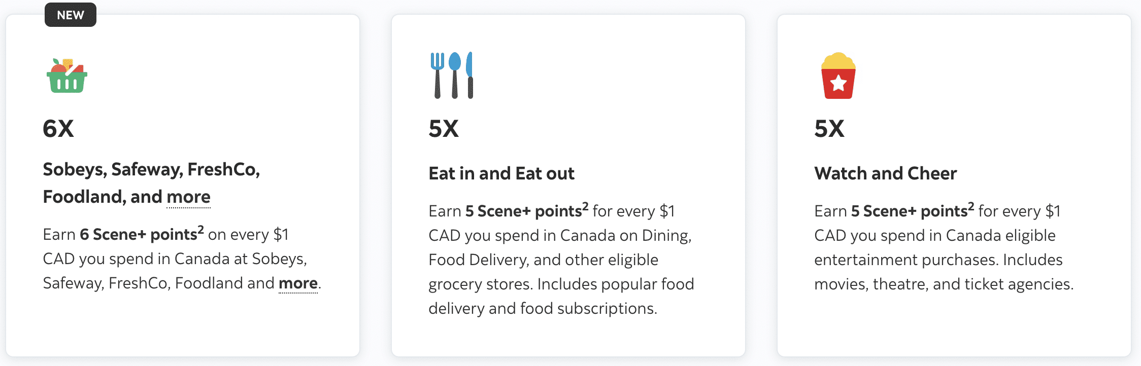 5 Scene+ points per dollar spent on groceries, dining, and entertainment†
