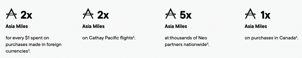 - Various Asia Miles per dollar spent with Neo partners†