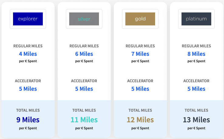 As mentioned above, you’ll earn an extra 5 Flying Blue miles per €1 spent on Air France and KLM flights as a cardholder, which comes in addition to the standard earning rates as a basic member or someone with elite status.