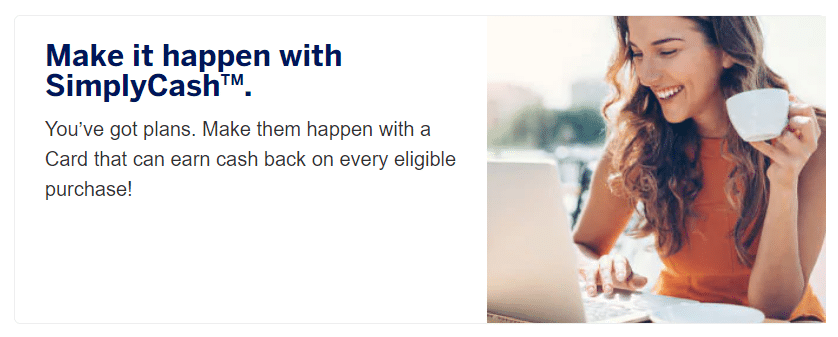 Meanwhile, the SimplyCash Card from American Express has a traditional horizontal layout presenting a card done up in blue with white accents and the brand’s centurion logo.