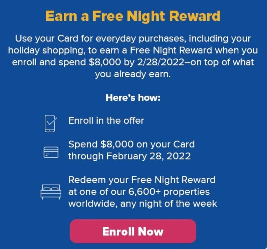 For example, in the past, Amex US Hilton cardholders have been targeted for a promotion in which they could earn a Free Night Reward simply by spending $8,000 (USD).