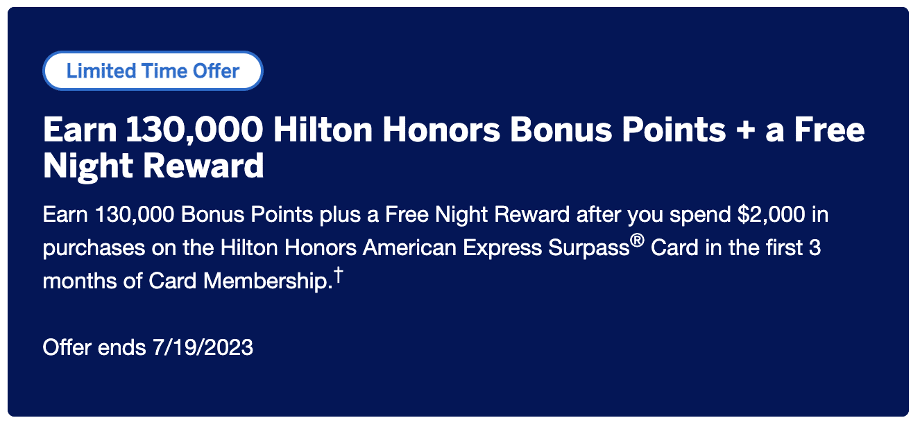 For example, in the past, the Amex US Hilton Card, Hilton Surpass Card, and Hilton Business Card have all offered a Free Night Reward as part of the signup bonus in addition to their usual points totals.