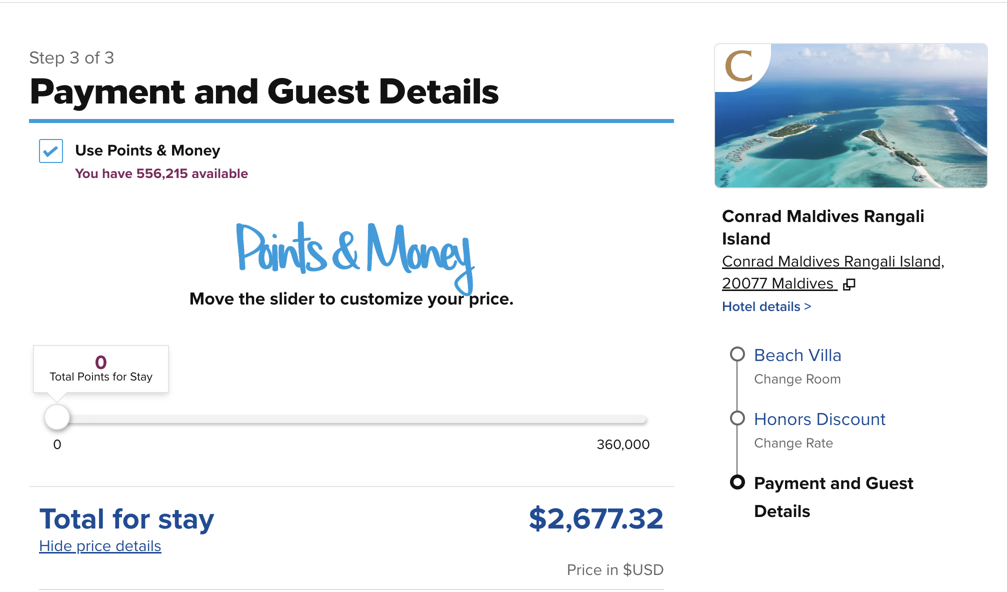 If you don’t want to do the math, Hilton Honors provides a handy slider, so you can see exactly how much you’ll save for the specific hotel and booking dates.
