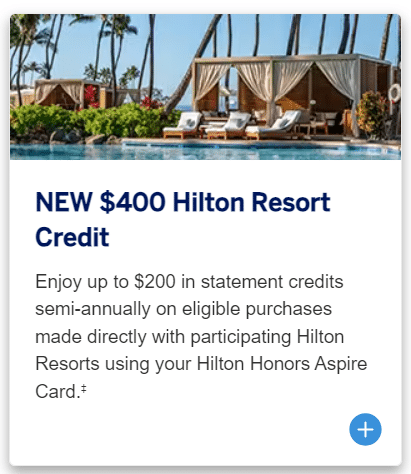 The Aspire card comes with a $200 semi-annual Hilton Resort credit that can be used at specific Hilton resorts, and the Surpass card comes with quarterly $50 hotel credits.