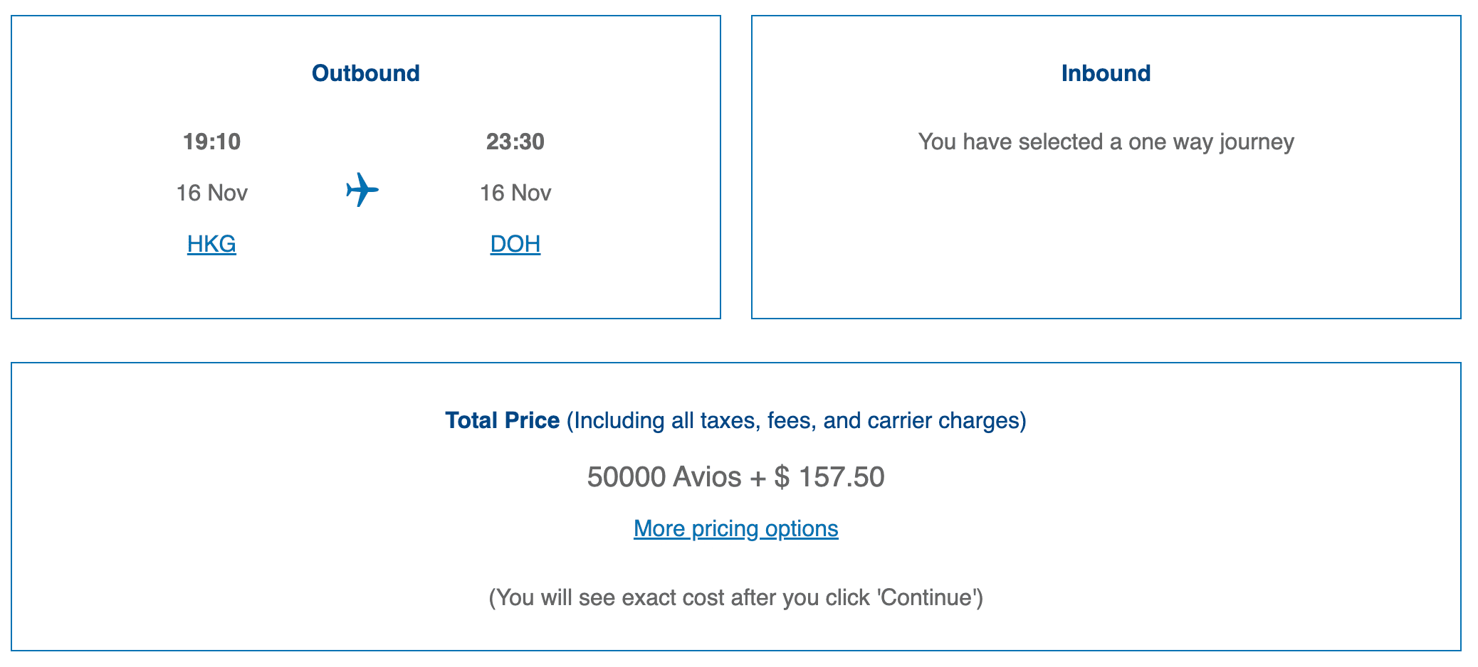 In particular, if you can price out your journey using the one-way or round-trip search tools, then the website can successfully calculate the surcharge that you’d have to pay. But if you’re using the multi-city search tool to piece together a one-way redemption, then you’ll need to have the full mileage amount in your account before you can see the fuel surcharges.