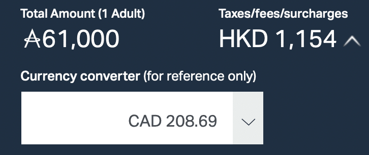 Taking advantage of Hong Kong’s regulations, however, brings the total taxes and fees down to a mere $157.50 (CAD), and of that, only $63.80 (CAD) is from carrier-imposed surcharges.