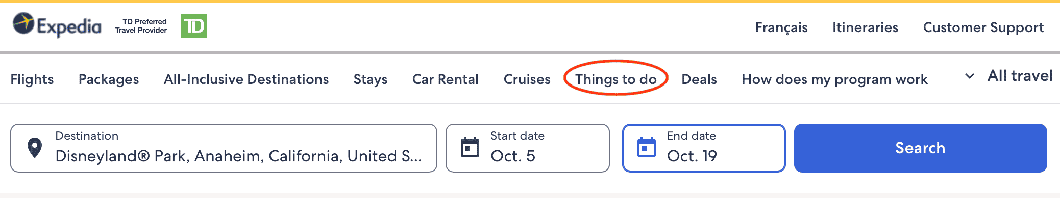For TD Rewards, you can purchase the tickets through Expedia for TD under the “Things To Do” category. To see what dates are available, enter a longer date range in the search field.