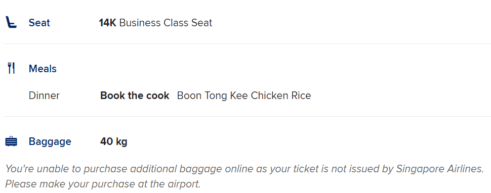 That makes perfect sense, since serving Book the Cook meals onboard flights departing out of Singapore is simply a matter of transporting the meal from the kitchen and loading it onboard the aircraft.